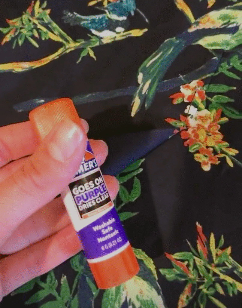 Unfold your fabrics so that they are laying right sides together. The glue should hold the two pieces in place without any need for pins.
