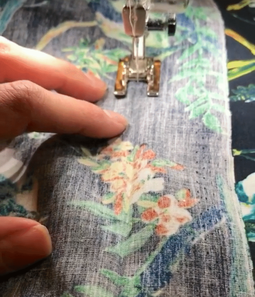 Stitch through both fabrics, along the fold line that you created with your ironing.