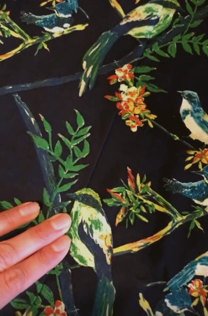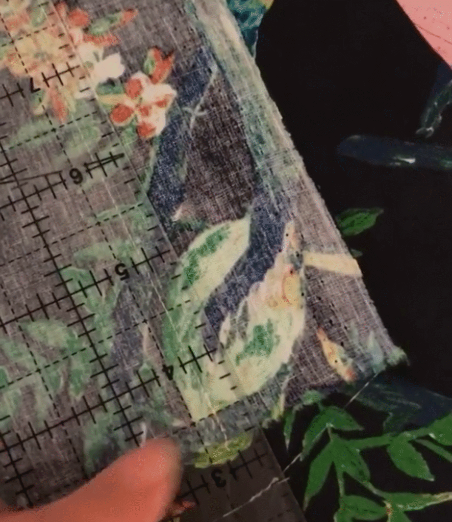 Now that you’ve pressed your seam, it’s time to find the repeat. Taking the folded edge, find the place in your fabric where the patterns line up with each other. This may be really close to the edge or further in than you expected!