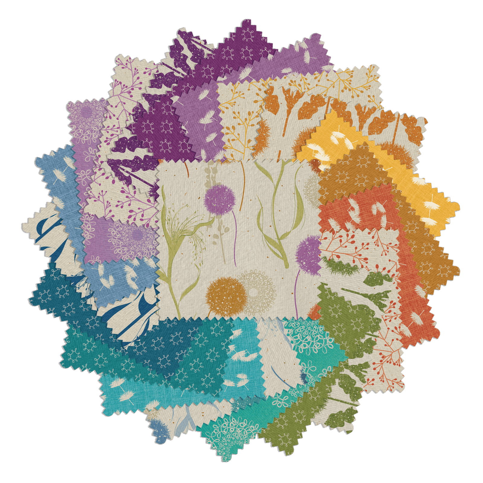 | Size | Strip Pie (2.5 inch strips), Charm Pack (5 inch squares), Fat Quarter Bundle (22x18inch cuts, 10×10 (10 inch squares) |