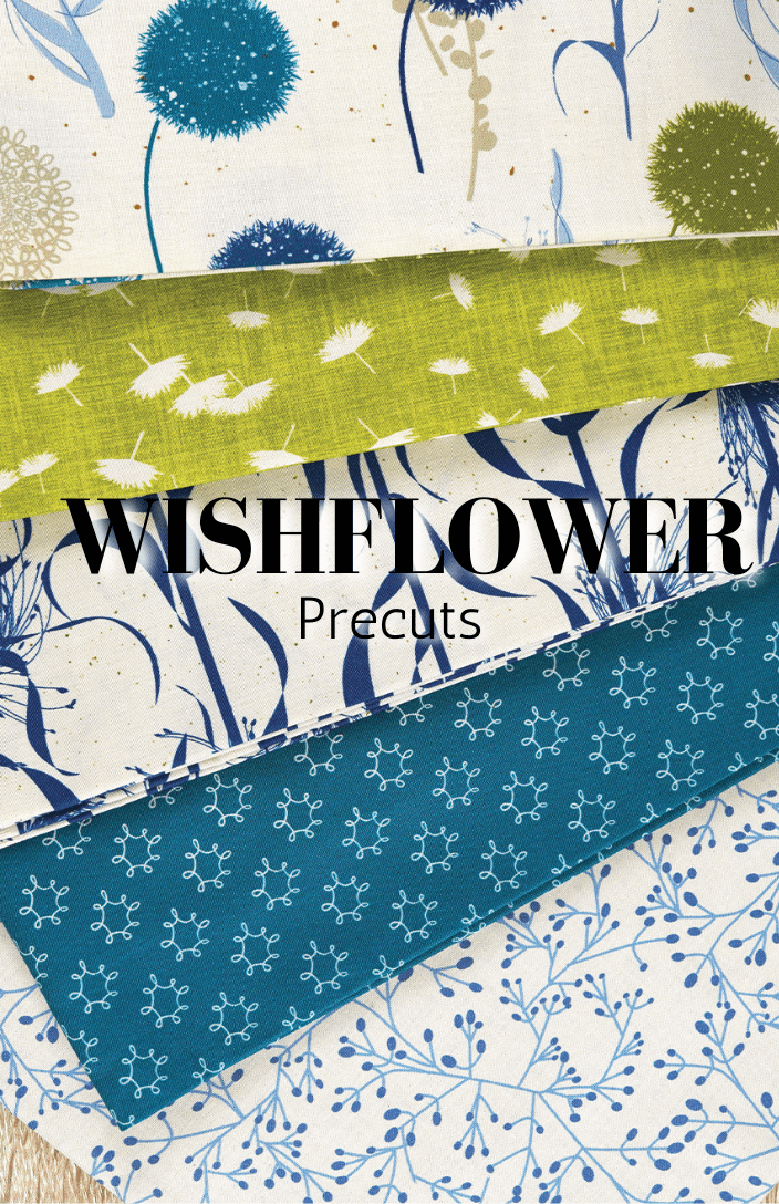 Each bundle features prints from the Wishflower fabric line, thoughtfully grouped so you can mix, match, and start sewing without the extra cutting. From scrappy projects to coordinated quilts, these precuts are a simple, satisfying way to bring Wishflower to your cutting table.